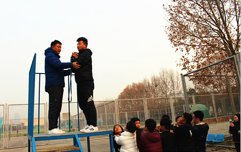 以“青春无限、突破自我”为主题的素质拓展活动在新体育场活动场地进行。在体育学院指导老师的带领下,四组队员在“记忆扑克牌”、“信任背摔”、“高空断桥”、“高空路”等游戏中挑战自我,顺利完成所有科目。通过素质拓展活动,让大家在以后的压力和困难面前,能够合理调整心态,勇于尝试,战胜自我。