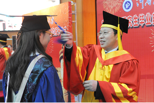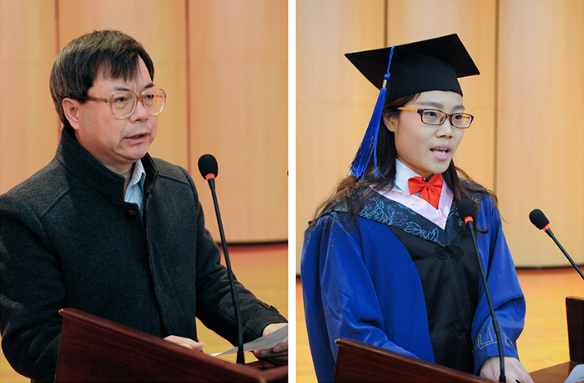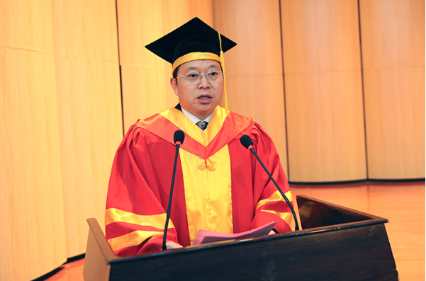 杨小林代表学校党委、行政和全校师生,向312名圆满完成学业的博士、硕士研究生表示热烈的祝贺,他指出,近年来,我校学位与研究生教育取得了长足的发展,研究生招生规模不断扩大,管理机制不断健全,教育教学成效显著,学术竞赛成绩斐然,人才培养质量稳步提高。杨小林对即将步入人生新征程的毕业研究生提出了四点希望:第一,要好学,勤于总结。树立终身学习的意识,学会做人、做事,学会求知、共处,勤总结,成坚韧,戒急躁,厚积而薄发。第二,要力行,臻于实践。用自己所学,服务社会,实现人生价值;同时不断积累经验,吸收新知识,增强新技能,坚持人生追求、创造精彩人生。第三,要明德,严于修身。积极践行社会主义核心价值观,自觉抵制各种错误思想和言行的侵袭。第四,要尽责,勇于担当。增强责任感和使命感,在服务社会、服务人民的不懈奋斗中实现人生价值、追求卓越人生。最后,他欢迎同学们毕业后常回家看看,学校将永远是远行学子的家。