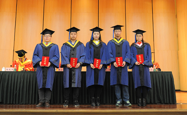 毕业典礼在庄严的国歌声中拉开帷幕。首先由张国成致开幕辞,对各位毕业生圆满完成学业表示了祝贺。随后,赵俊伟、周英分别宣读了授予博士和硕士研究生毕业证、授予硕士研究生学位证、表彰省级和校级优秀学位论文和优秀实践成果获得者的通知。校领导为2017届博士研究生代表颁发了毕业证书,为2017届校级优秀博士和硕士学位论文和优秀实践成果奖获得者颁发荣誉证书并合影留念。