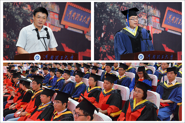 导师代表、测绘学院景海涛教授和毕业研究生代表、机械学院刘源先后发言,表达了对2017届毕业研究生的美好祝愿和对学校的感激之情。