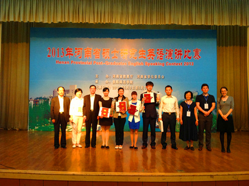 5月9日—10日,由河南省教育厅、河南省学位委员会主办,信阳师范学院承办的2013年河南省硕士研究生英语演讲比赛在信阳师范学院举行,来自全省20所研究生培养单位的74名非英语专业的选手参加了比赛。经过两天激烈的角逐,我校计算机学院研究生李祎同来自解放军外国语学院、郑州大学、河南科技大学的其他4名研究生共同获得一等奖,资环学院研究生施兴华获得二等奖,马克思主义学院研究生缪琳和文法学院研究生赵力维分获优秀奖。