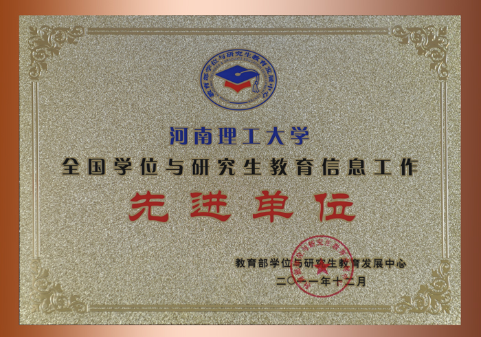 12月20日-21日,教育部召开的全国学位与研究生教育信息工作会议在广东深圳召开。会上,我校被授予全国学位与研究生教育信息工作先进单位。