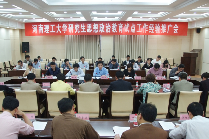 研究生处副处长丁亚红在会上作题为《抢抓机遇 站位全局 努力开创研究生思想政治教育工作新局面》的试点工作总结报告。报告全面回顾和总结了试点工作取得的成绩,并对下一阶段思想政治教育工作任务做出安排和部署。报告指出试点工作在校党委的正确领导下,各试点单位不断完善领导体制和工作机制,工作机制渐趋成熟,工作水平不断提高,取得了可喜的成绩,呈现出良好的发展态势。关于下一阶段工作任务,报告指出,要进一步建立健全工作制度体系,拟定《河南理工大学研究生辅导员工作条例》,修订《河南理工大学研究生奖学金评定办法》等规章制度;进一步加强工作队伍建设,提高辅导员综合素质,发挥导师育人作用;进一步发挥课堂教学主渠道作用;进一步加强研究生党建工作;进一步创新思想教育工作的途径和载体,繁荣校园文化,丰富实践内涵,建设网络平台;进一步发挥研究生会等学生组织的“三自”作用。报告指出,要进一步强化机遇意识、忧患意识、责任意识、创新意识、站位全局、务求实效,以更加奋发有为的精神状态,不断开创研究生思想政治教育工作的新局面,为全面开创高水平教学研究型大学新局面做出应有的贡献。
