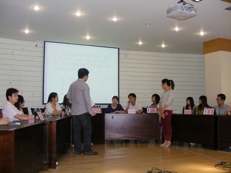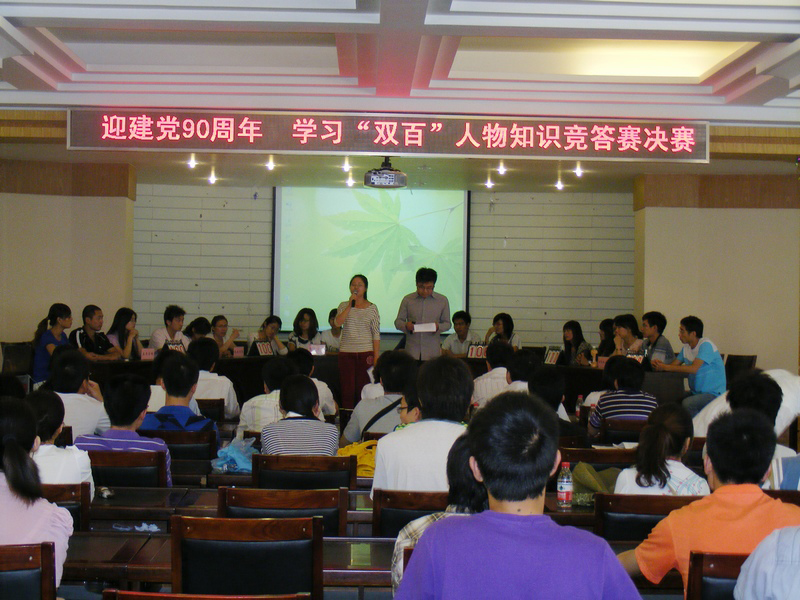 为庆祝中国共产党成立90周年,通过学习“双百”人物先进事迹,加强研究生的爱党爱国教育。5月31号下午,由校党委研究生工作部主办、校研究生会承办的研究生学习“双百”人物知识竞答赛决赛在大学生活动中心招聘大厅举行。校党委研工部副部长王伟超、校团委副书记冯平、部分研究生辅导员、研究生秘书与200余名研究生共同观看了此次比赛。