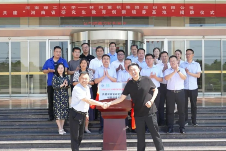 6月23日上午,机械学院与林州重机集团股份有限公司共建“河南省研究生教育创新培养基地”揭牌仪式顺利召开。该院党委书记聂凯、党委副书记许荣梅、副院长张登攀与林州重机集团股份有限公司董事、总经理郭钏、公司党委委员、总经理助理吕占国等20余人参加了此次活动。仪式由郭钏主持。