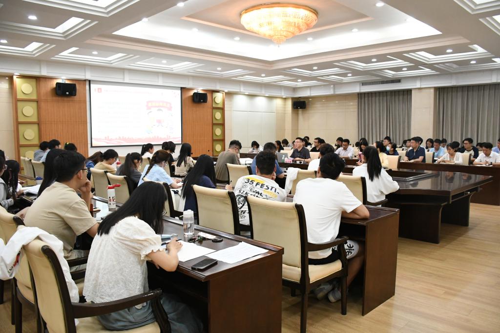 为深入学习贯彻习近平新时代中国特色社会主义思想,引导青年坚定理想信念,进一步增强向心力、凝聚力和创造力,6月8日下午,副校长赵同谦在力行楼一楼会议室以《汲取伟大思想的智慧和力量 在实现伟大梦想实践中踔厉奋发》为题为我校研究生党员代表上了一堂主题教育专题党课。
