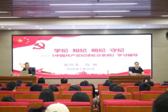 尚敏以《学纪知纪明纪守纪——〈中国共产党纪律处分条例〉学习辅导》为题。从学习《中国共产党纪律处分条例》(以下简称《条例》)的经历谈起,向大家强调了学习贯彻新修订的《条例》的重要意义。强调我国的首部《条例》经过四次修订形成了如今的最新版,体现了中国共产党与时俱进、开拓创新的进取精神。介绍了党纪处分、政务处分和组织处理的几种类型,并从政治纪律、组织纪律、廉洁纪律、群众纪律这几方面为切入点,向大家强调了应该如何遵守党的纪律和规定。他提醒大家要充分认识到《条例》修订的重大意义,切实加强自身学习和领悟能力,要严明政治纪律,充分发挥党员模范作用,使学习党纪的过程成为增强纪律意识、提高党性修养的过程,真正使铁的纪律转化为师生党员的日常习惯和自觉遵循。