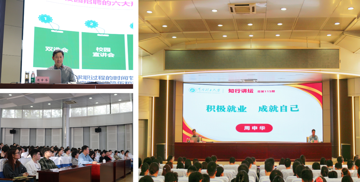 10月11日下午,由党委研究生工作部(研究生院)主办的第115期研究生知行讲坛活动在力行楼学术报告厅举办,邀请校招生就业处管理科周申华老师作题为“积极就业,成就自己”的就业专题讲座。本次讲座由研工部副部长、研究生院副院长林龙主持,300余名研究生现场聆听。