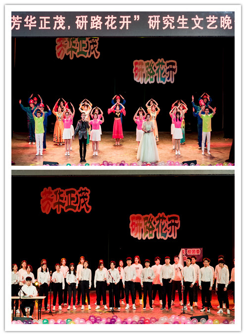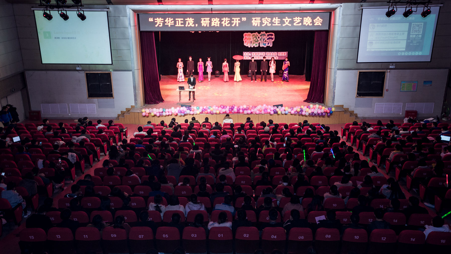 12月23日晚,我校研究生在小礼堂成功举办了主题为“芳华正茂 研路花开”的文艺晚会,本次晚会由党委研工部、研究生院、校团委主办,校研究生会承办。党委研工部、研究生院、学校各职能部门、各学院的领导老师,兄弟院校的研究生代表以及近800名在校学生共同观看了晚会。