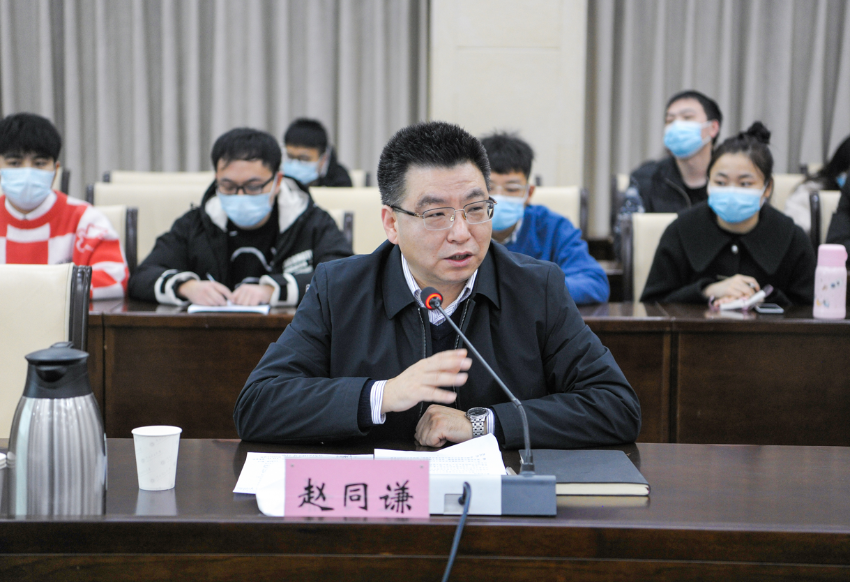 12月1日下午,副校长赵同谦在力行楼方形会议室,为来自22个学院的研究生干部代表讲授题为《学习贯彻落实党的十九届六中全会精神》的思想政治理论课,并在课后开展面对面座谈交流。研工部负责人和工作人员参加听课和座谈。