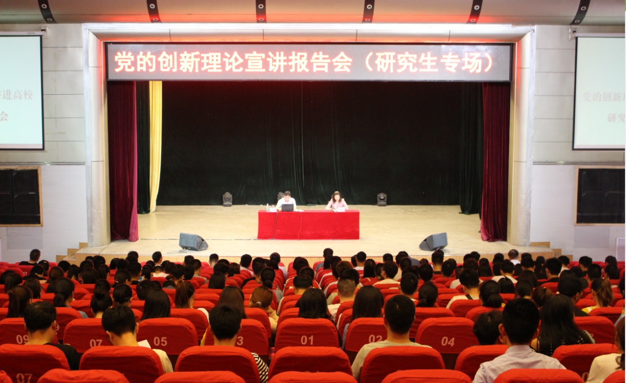 为深入学习贯彻习近平新时代中国特色社会主义思想和党的十九大精神,落实省高工委、省教育厅安排部署“党的创新理论万场宣讲进高校”活动,5月25日下午,我校举行“党的创新理论万场宣讲进高校”研究生专场报告会。校党委研究生工作部副部长王伟超作了题为《新时代的领路人》的辅导报告,党委研工部部长、研究生院院长张国成出席会议,各学院研究生辅导员、研究生干部、党员代表400余人参加报告会。