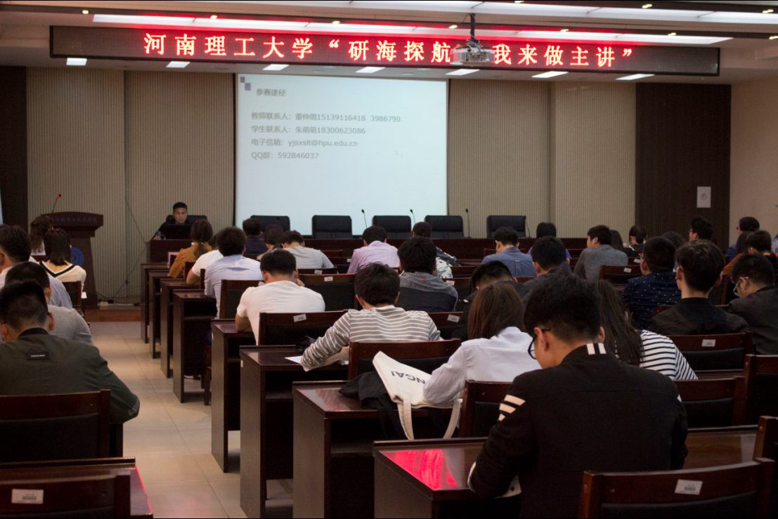 4月19日下午,我校研究生第九期“研海探航——我来做主讲”活动在计算机学院201学术报告厅如期举行。本期报告的主题为“寻数学建模之奇观,探电子设计之奥秘”,机械学院2016级研究生李东飞和电气学院2016级研究生徐炎飞为全校近130名研究生做了经验交流。