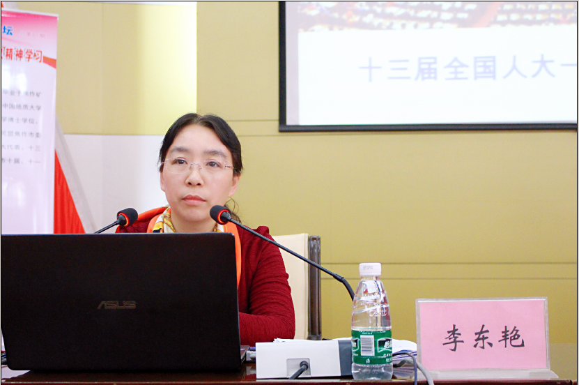 报告会上,李东艳以习近平总书记的“两会轨迹”为主线,从人民代表大会制度及其建立的历史背景,大会主要内容、重大成果,两会期间的震撼时刻,河南代表团及个人履职情况等方面,对大会盛况进行了生动地描绘,对大会精神进行了深入解读。李东艳指出,十三届全国人大一次会议是在贯彻党的十九大精神的开局之年、改革开放四十周年、决胜全面建成小康社会、实施“十三五”规划承上启下的关键一年召开的重要会议,是中国人民政治生活中的一件大事,具有划时代的里程碑意义。