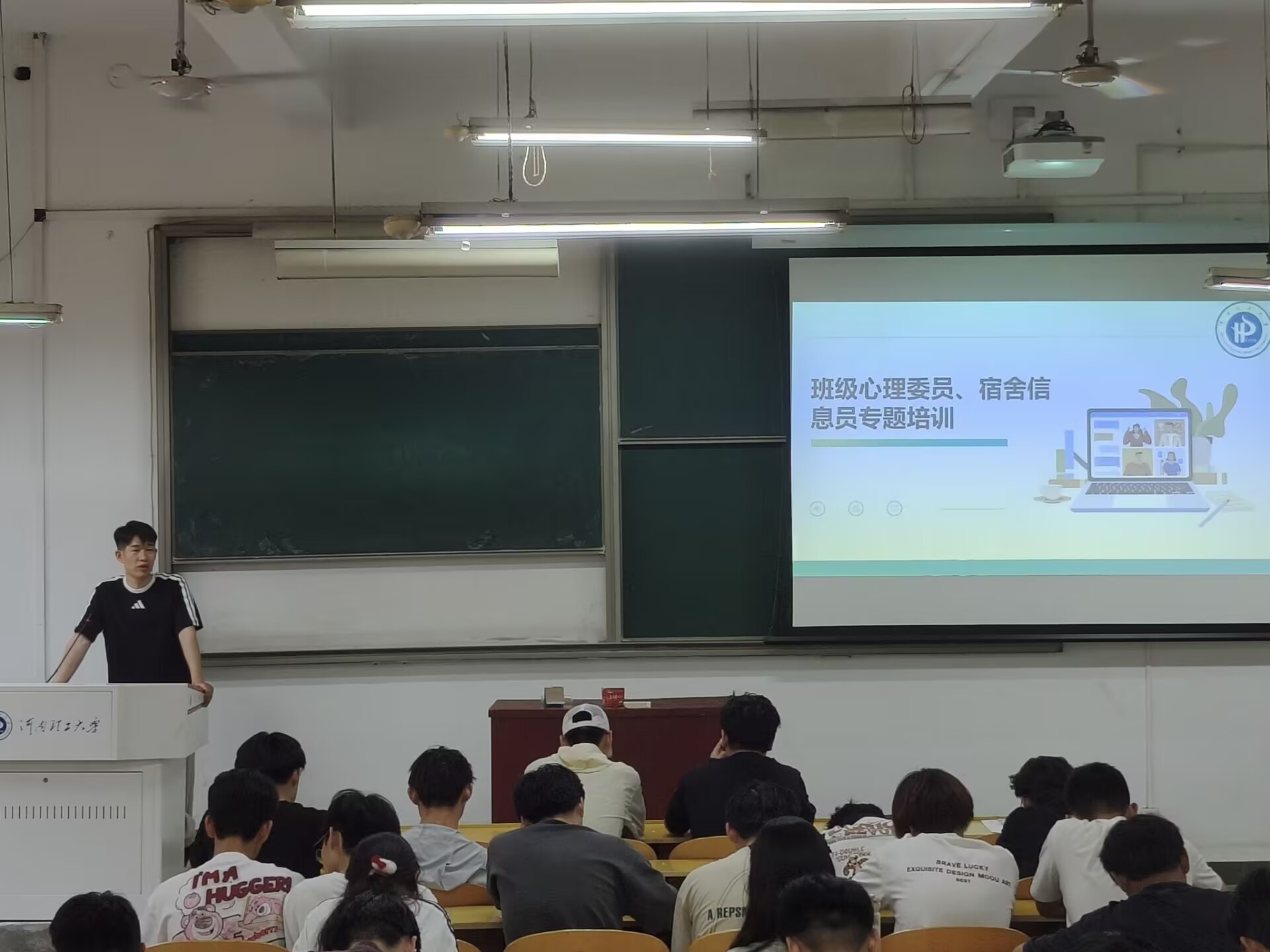 在“5·25心理健康日”来临之际,按照学院心理健康教育活动月活动安排,5月20日下午,土木学院在102教室开展了心理健康宣传教育月专题培训会。本次培训由学院心理辅导员银谦主讲,全院研究生及本科生心理委员、宿舍信息员及学生骨干等130人参加培训。