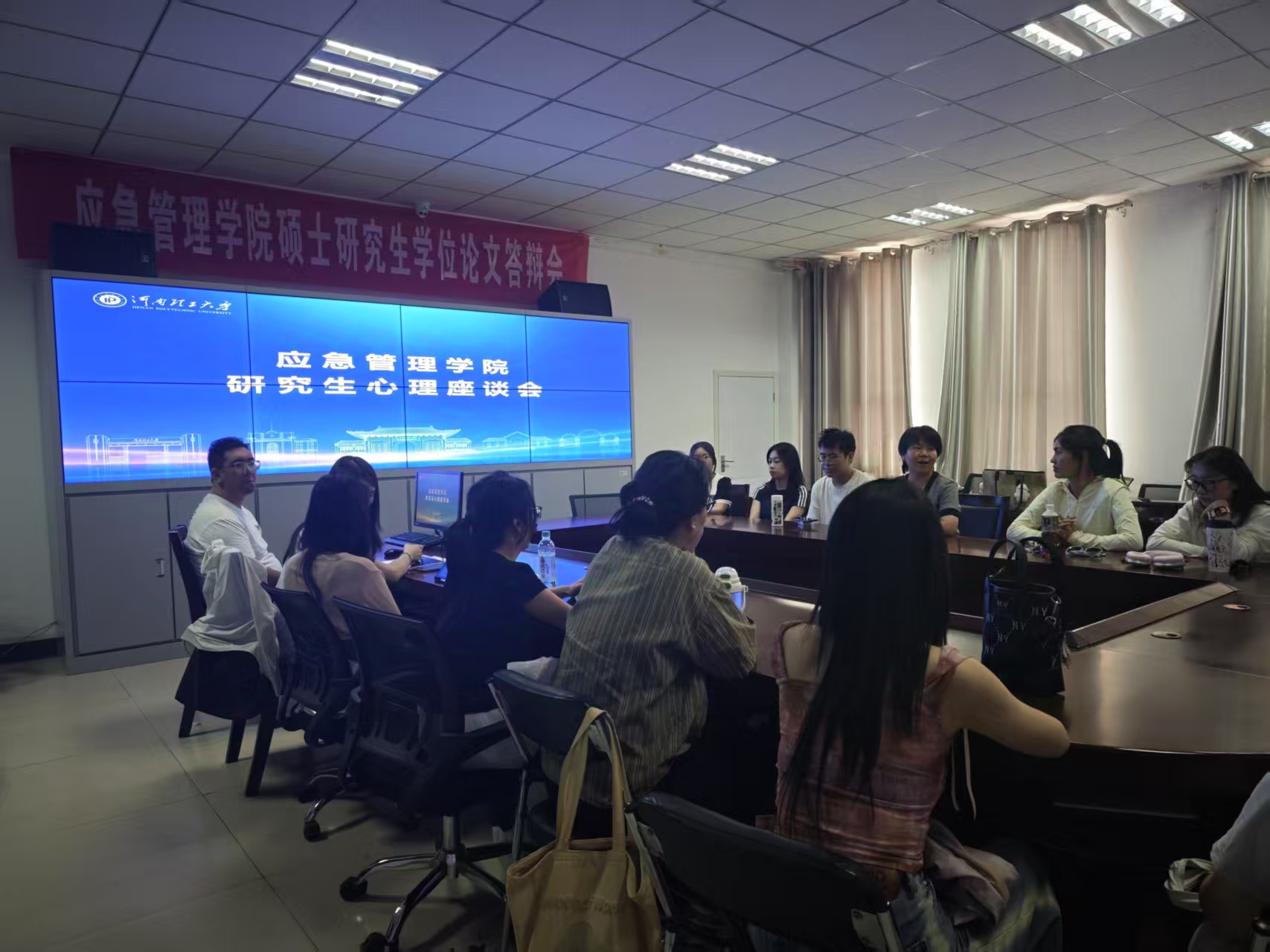 为加强研究生心理健康教育,帮助研究生尽快适应科研学习与生活节奏,缓解心理压力,5月27日下午,应急管理学院党委副书记任华与我院研究生于文综楼523会议室进行心理座谈。本次座谈围绕心理健康调适、学业规划与压力管理展开,旨在引导我院学生以积极心态迎接研究生阶段的挑战。