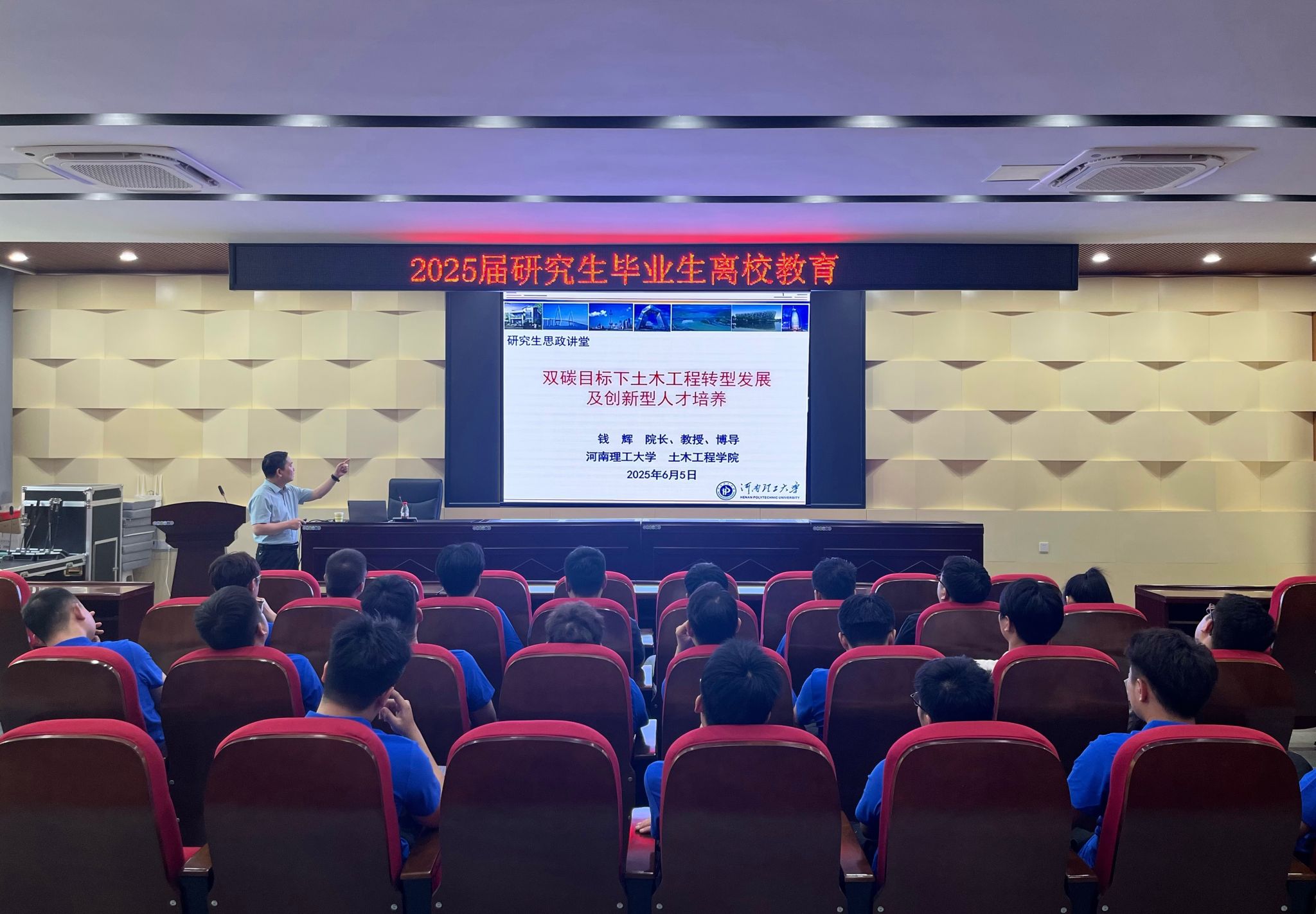 为深入贯彻落实立德树人根本任务,加强毕业生思想政治教育,6月5日下午,2025届研究生毕业生离校教育活动在土木学院101会议室成功举办。本次活动由钱辉院长主讲,全体毕业研究生参加。