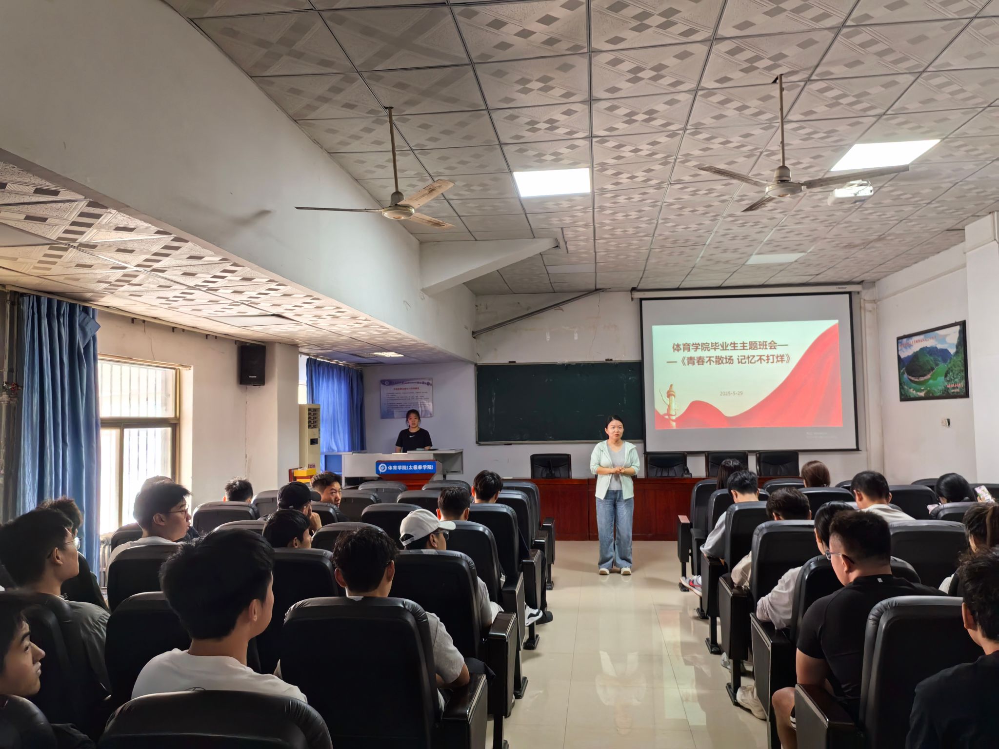 2025年5月29号上午,体育学院在大会议室召开了毕业生主题班会《青春不散场 记忆不打烊》,班会由辅导员孙玉景老师主持,全体2025届毕业生参会。