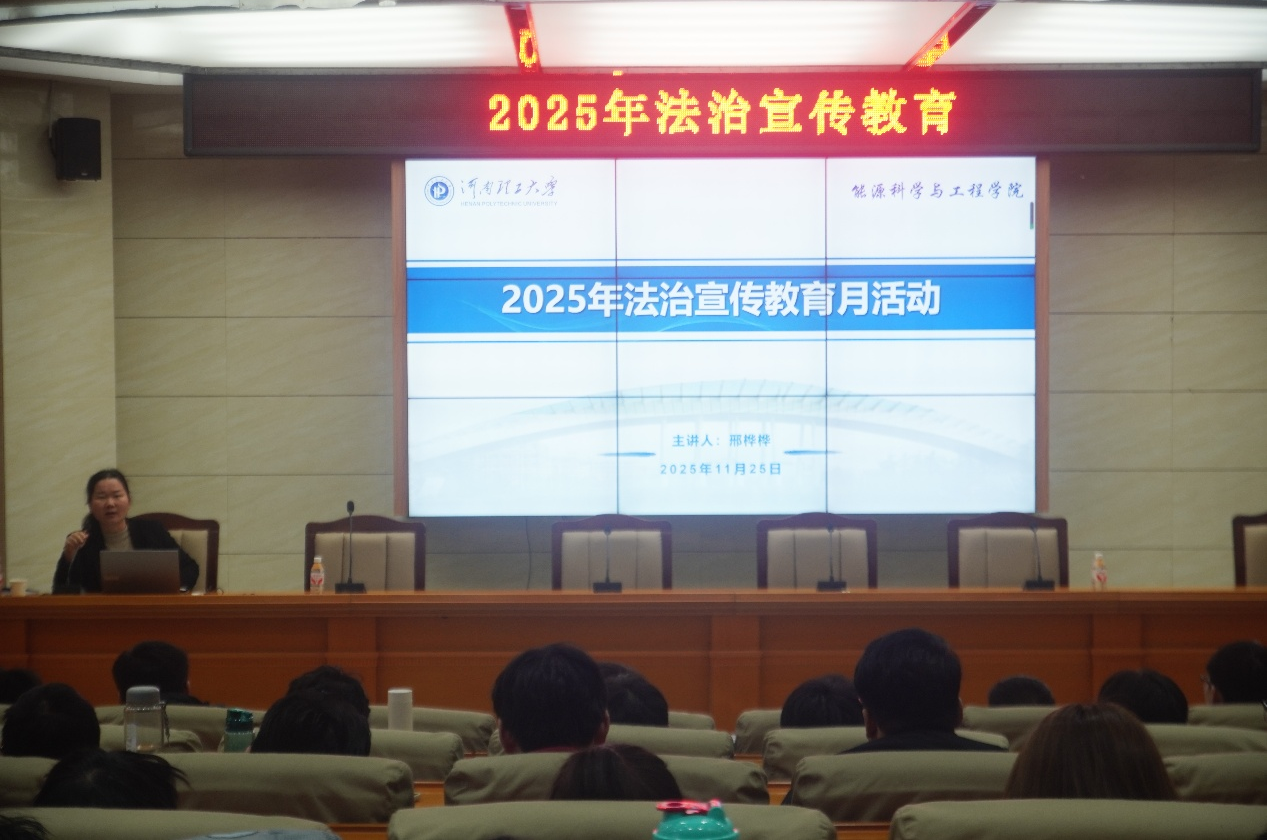 2025年11月27日,河南理工大学材料学院研究生院聚焦法治与网络安全主题,结合党的二十届四中全会精神及新施行的《中华人民共和国法治宣传教育法》,在老理化楼开展了由邓沛奇主讲,材料学院全体研究生参与的一系列学习教育活动,推动法治理念与安全意识入脑入心。
