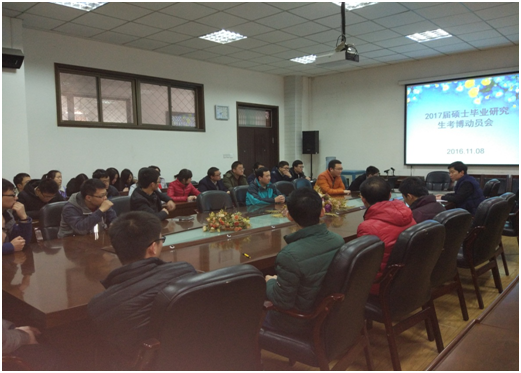 11月8日上午,安全学院在该院304会议室召开了2017届硕士研究生考博动员大会。学院研究生教学秘书沈玲、研究生辅导员程前及2017届全体研究生参加了会议。本次会议由程前主持。