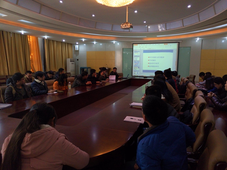 为加强研究生科学道德和学风建设,树立研究生良好的学术道德观念,12月17日下午在测绘学院一楼会议室召开了主题为“恪守科学道德 促进学风建设”的专题讲座。本次讲座由我院景海涛教授主讲,测绘学院15级全体研究生参与了此次活动。