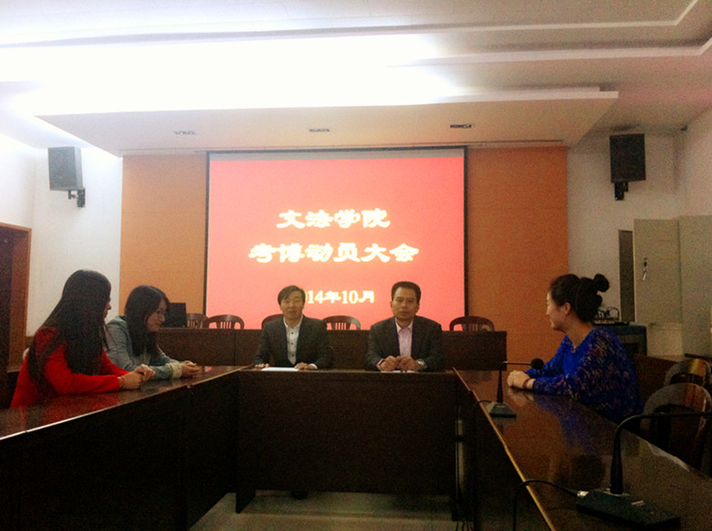 又是一年备考季,为了学院研究生更好地发展,文法学院于10月30日下午在文综楼101会议室召开了2015届考博动员大会。文法学院副院长冒建华、副书记张建新出席了会议,会议由文法学院副书记、研究生辅导员张建新主持。