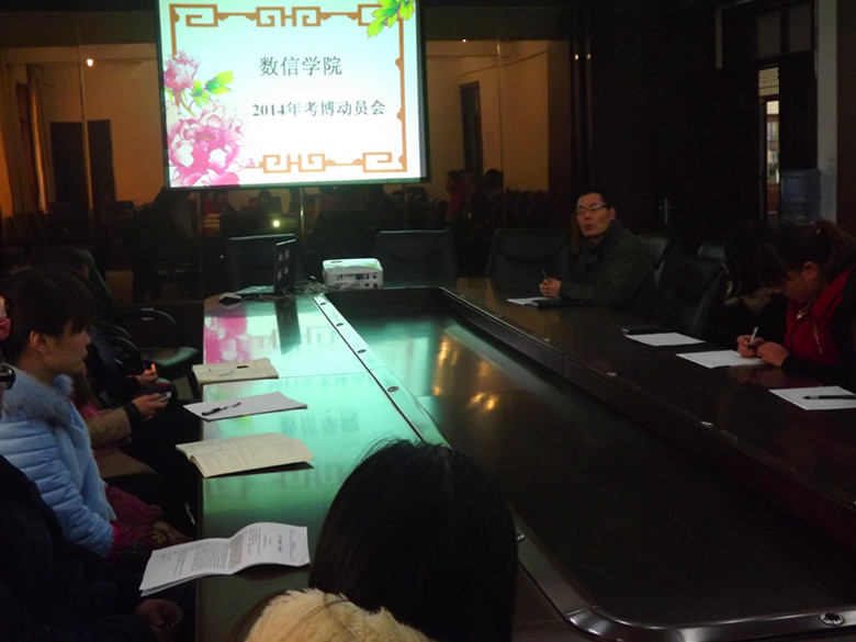 11月18日下午,数学与信息科学学院在该院二楼会议室召开了研究生考博动员会。学院主管科研与研究生工作的副院长原保全、研究生秘书董仲周和全体研究生参加此次大会。会议由原保全主持。