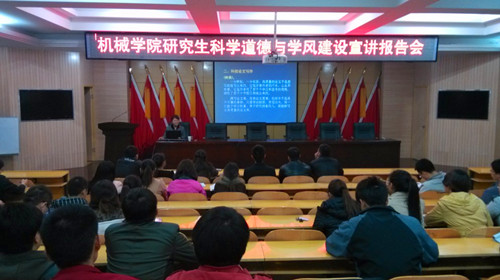 11月7日晚,机械学院研究生科学道德和学风建设宣讲教育报告会在学院会议室举行。本次报告会特邀该院研究生导师郭培红教授为全体研究生做了题为《科技论文写作浅谈》的报告,报告会由该院副院长焦锋主持。