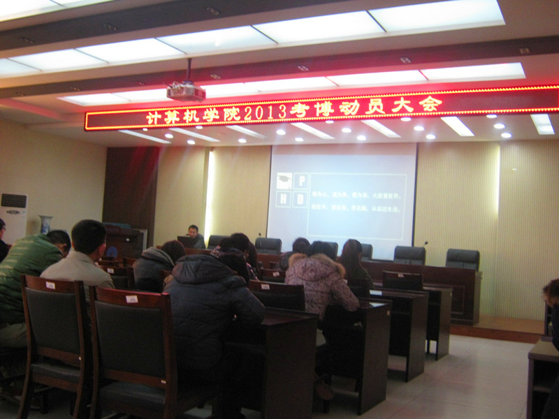 3月27号上午10点10分,计算机学院在院楼201会议室顺利召开以“PHD价值﹒梦想”为主题的研究生考博动员大会。研究生辅导员毋东老师及计算机学院研究生参加此次会议。