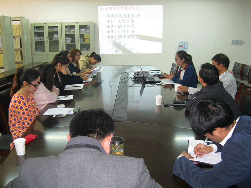 随后,7名研究生就汶川地震和芦山地震开展了关于机制研究、脆弱性研究、物资分类研究、应急专业化研究、民间组织研究、网络舆情研究、灾害文化研究等七个方面的研究,并就研究结果做了总结报告,与会的专家教授对每一项研究报告均进行了专业细致的点评。