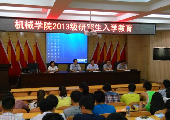 为帮助新入学的研究生尽快明确研究生培养目标,适应研究生培养模式,9月17日下午,机械学院在205会议室召开2013级研究生入学教育报告会。学院院长赵波,副院长焦锋,党委副书记支光辉,研究生秘书张明军以及研究生辅导员曹月坤出席了本次会议。2013级61名博、硕士研究生参加了报告会,会议由副院长焦锋主持。