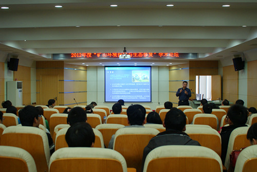 为深入贯彻落实学院“十二五”事业发展规划,提高研究生实践与创新能力,促进学术交流,营造学术氛围,11月17日上午, 资环学院举办第二届“研究生学术文化节”之“矿山环境保护与生态修复”方向学术论坛。校研究生处处长赵同谦教授,郝成元、邰超、王明仕、张东、毛宇翔副教授及李少华博士后做了精彩的学术报告。环境专业全体研究生及部分本科生参加报告会。报告会由毛宇翔老师主持。
