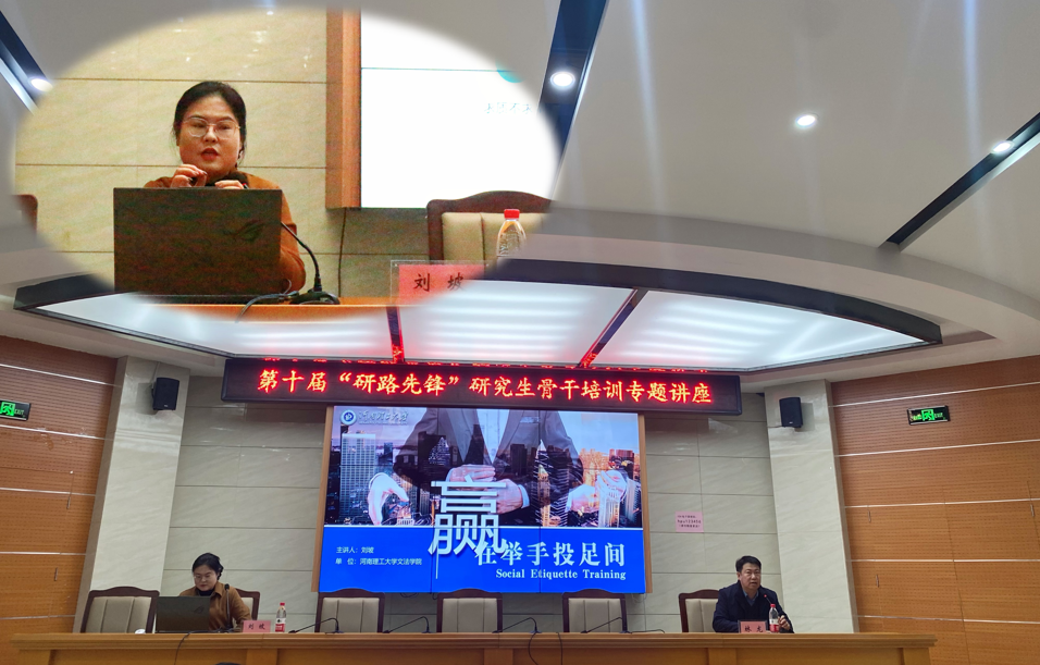 刘坡从人无礼则不生、事无礼则不成、国家无礼则不宁三个方面分别阐述了礼仪礼节在社会和个人发展中的重要作用。她指出,在当今竞争日益激烈的环境下,当代青年需要更加全面的发展,要能够看到内卷的有益一面,更加严格地要求自己。刘坡强调,八小时之外不学习以及对新生事物反应迟钝的人在当今世界是非常容易被淘汰的,因此,当代研究生需要严格约束自己,提升核心竞争力,避免被边缘化甚至被淘汰,并且要始终关注自己的仪容仪表、礼仪礼节。