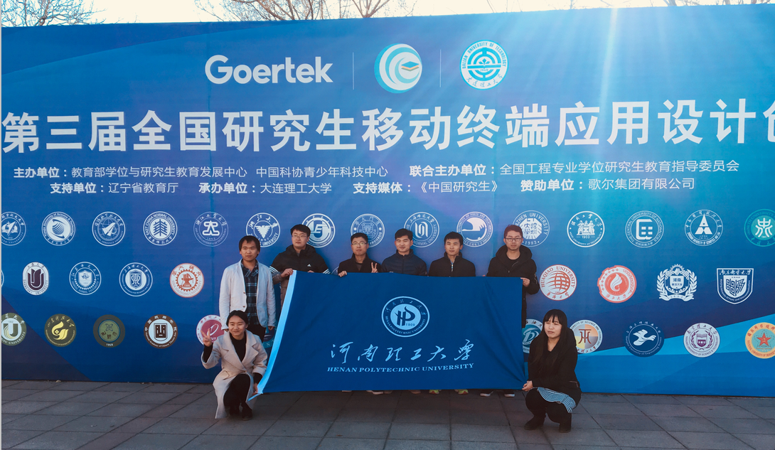 11月25-26 日,“歌尔杯”第三届全国研究生移动终端应用设计创新大赛总决赛在大连理工大学成功举行。经过作品演示与现场答辩、封闭答辩、优秀作品路演等环节的激烈角逐,由我校计算机科学与技术学院王建芳老师指导的Dream Sky团队的作品《移动云画板》和HPU-GM 团队的作品《变废为宝》分别获得二等奖,任建吉老师指导的毛毛虫团队的作品《爬虫即服务》获得三等奖,同时,我校获得“优秀组织奖”。