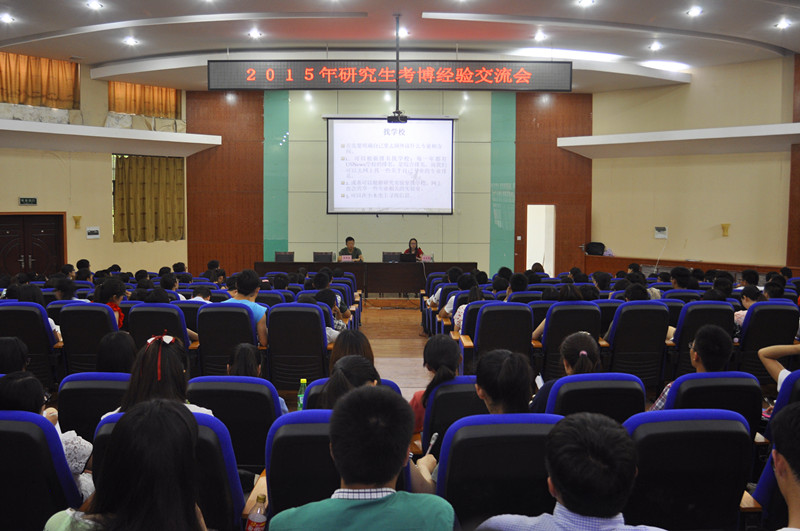 为鼓励硕士毕业研究生考取博士,帮助更多的研究生了解考博相关内容。6月2日下午,我校2015年硕士研究生考博经验交流会在学术报告厅举行,近300名硕士研究生参加了本次交流会。
