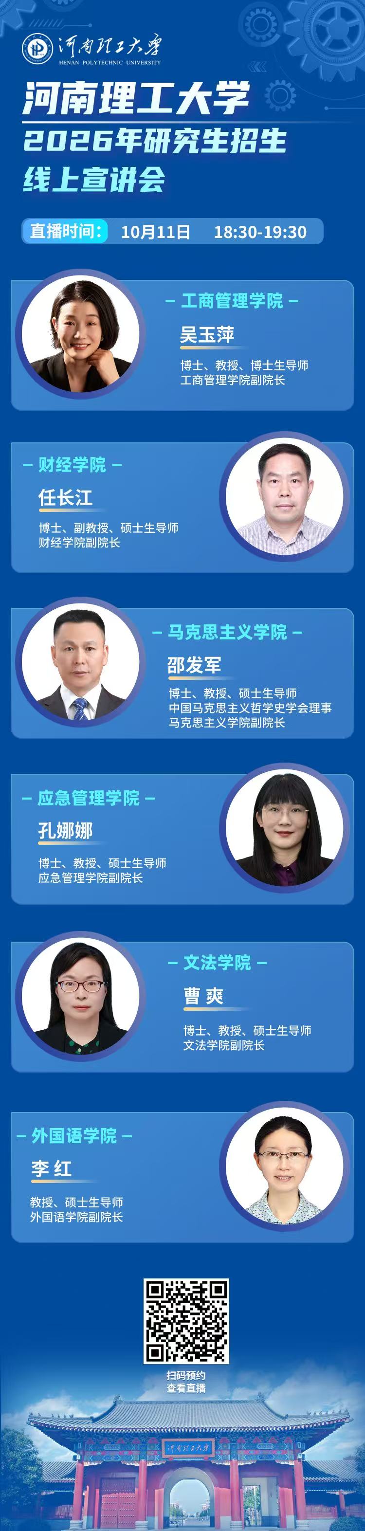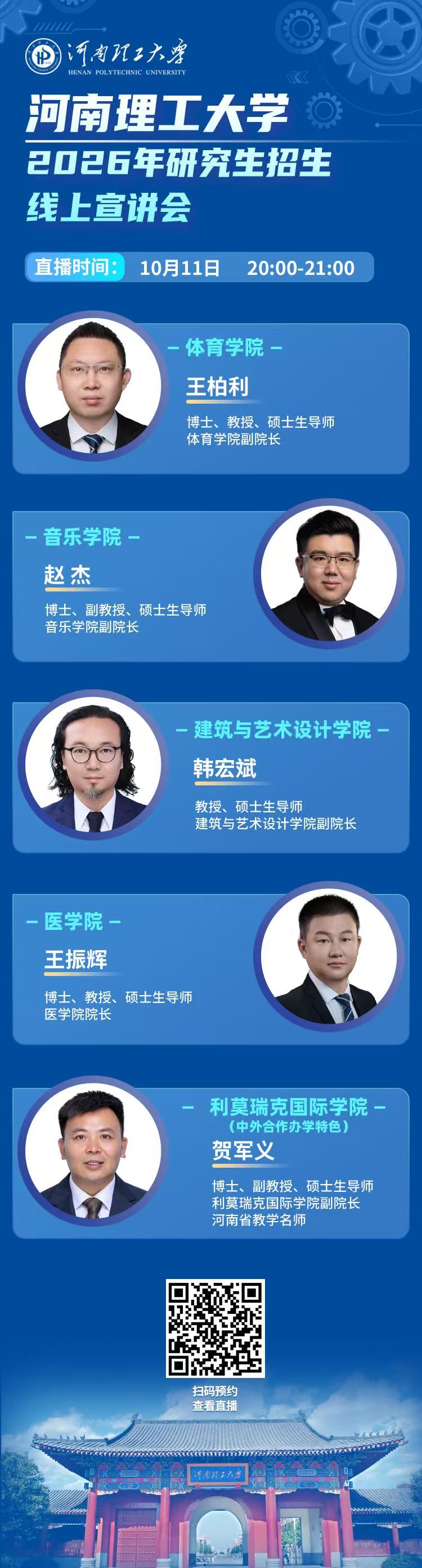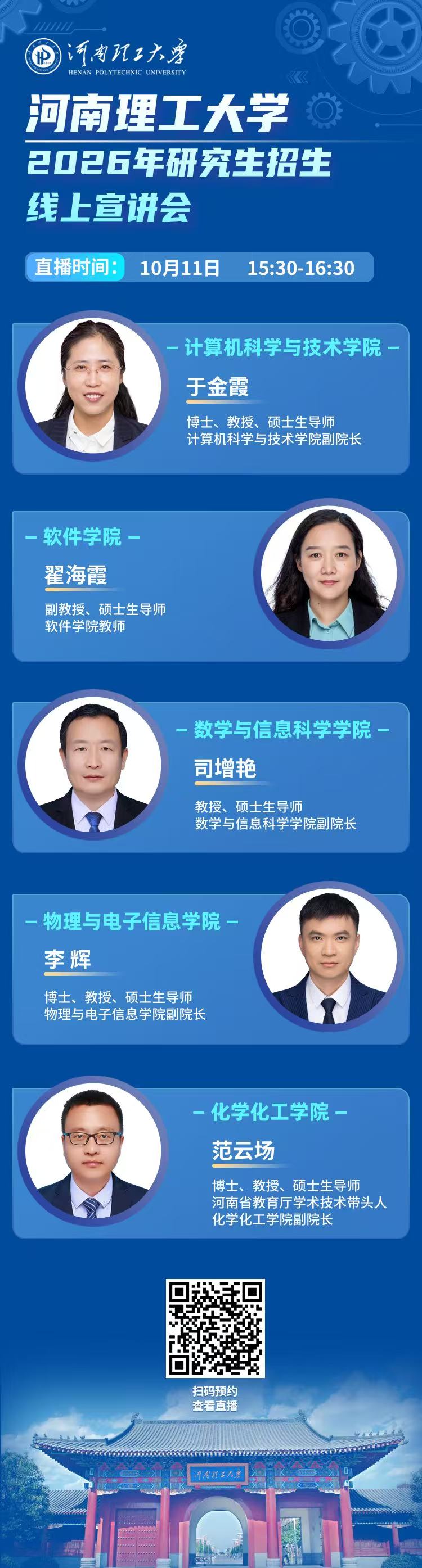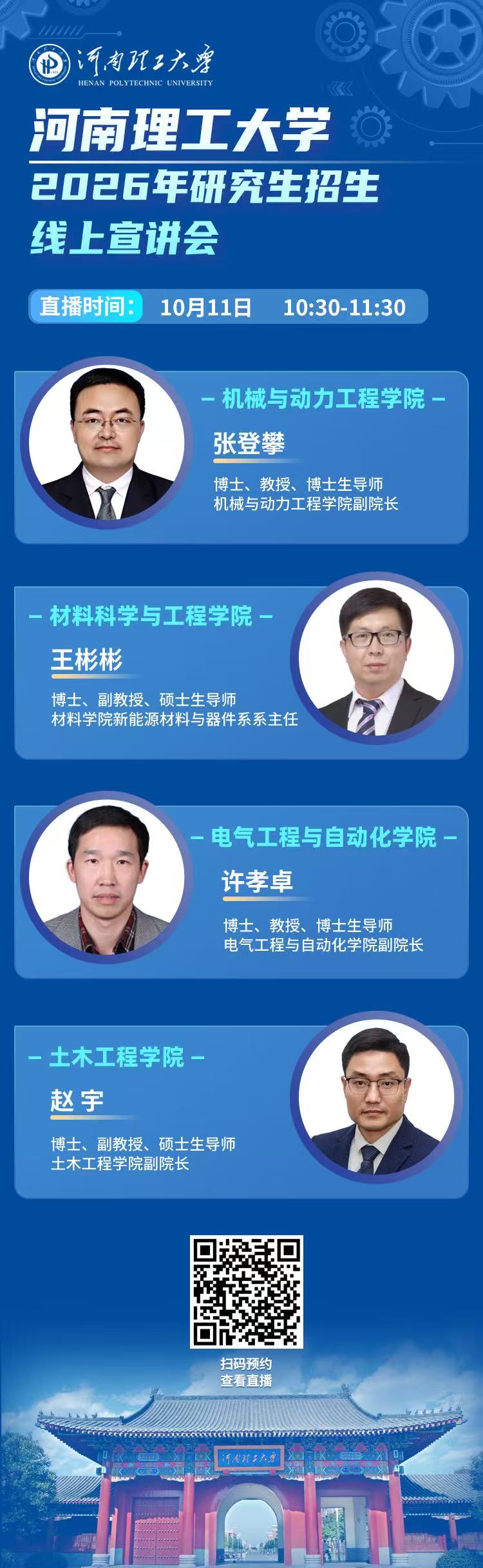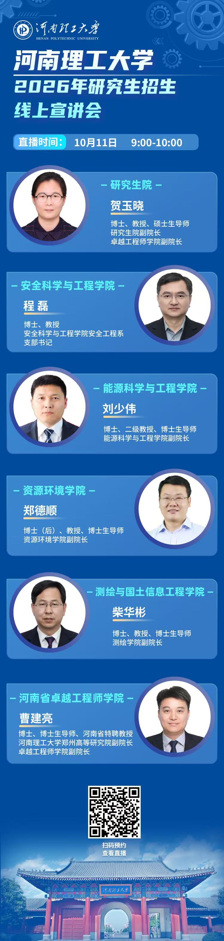 10月11日,河南理工大学研究生院携手各大招生院系齐聚云端、围坐圆桌,共话研途未来,针对“招生培养政策、专业学科魅力、学院育人优势、未来职业蓝图……”为考生全方位解答各类疑问!