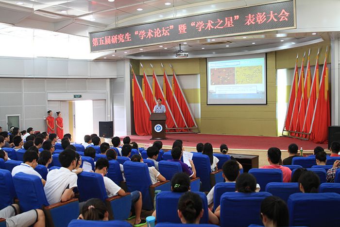 6月17日下午,我校第五届研究生“学术论坛”暨“学术之星”表彰大会在圆形报告厅隆重召开。河南理工大学校党委副书记周志远、研究生处副处长张光胜、丁亚红,研究生工作部副部长王伟超以及各研究生培养单位相关老师和我校近300名研究生参加会议。