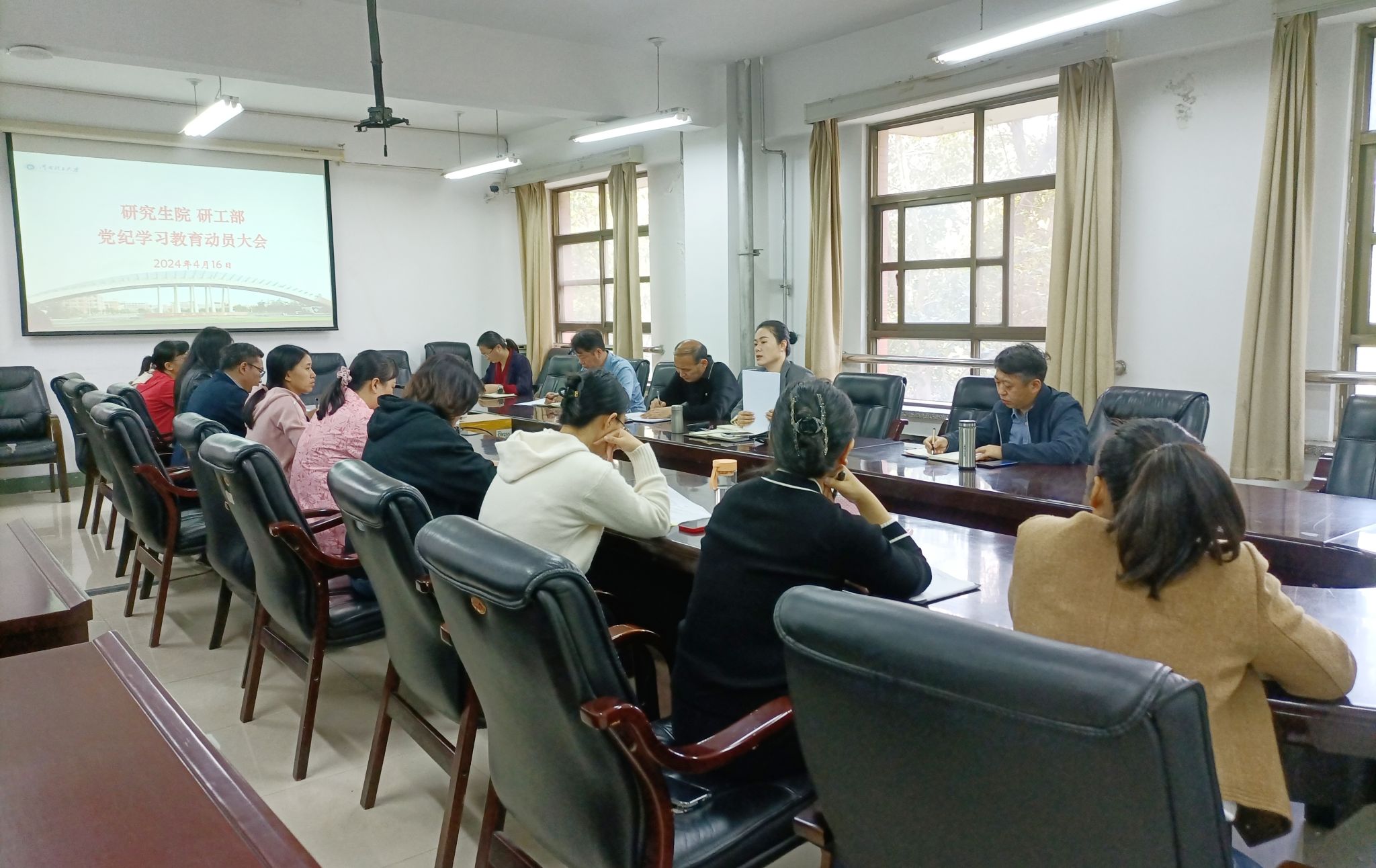 4月16日上午,研究生院(研工部)党支部在力行楼224会议室召开党纪学习教育启动部署会,认真学习贯彻习近平总书记关于党纪学习教育的重要讲话和重要指示精神。会议由支部书记平瑞主持,全体党员参加。