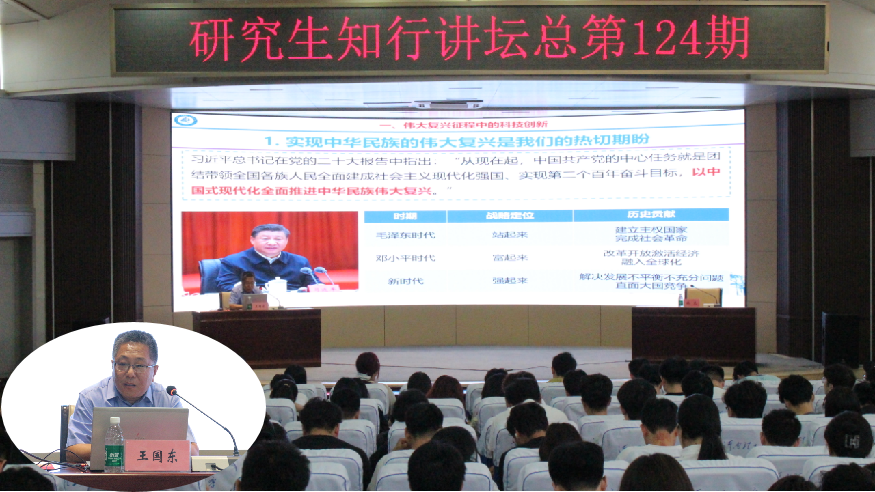 6月12日下午,总第124期研究生知行讲坛活动在力行楼学术报告厅举办,物电学院王国东教授应邀以“投身伟大复兴征程,成就卓越自我”为题进行讲座。全校近三百名研究生现场聆听。