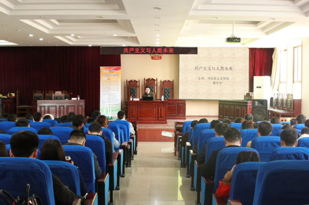 2017年3月7日下午,我校第51期研究生“知行讲坛”在文法学院模拟法庭如期举行。马克思主义学院葛宇宁老师受邀为我校100多名研究生作了题为“共产主义与人类未来”的专题报告。