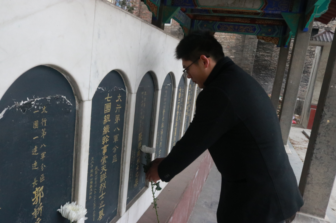 11日上午,参加人员怀着崇敬的心情在英雄纪念碑前庄严肃立。在主持人宣布公祭仪式开始后,计算机学院研究生会主席常慧刚致悼念词。革命先烈的大无畏精神,照亮了我们这一代的光明前途,让我们看到华夏儿女的爱国情怀。我们不能忘记,用自己的鲜血染红旭日的英雄,不能忘记把生命余晖奉献给祖国的烈士。常慧刚激昂的陈辞,表达了同学们对革命先烈伟大精神的颂扬、对伟大祖国的热爱,以及积极投身于中华民族伟大复兴的信念。随后,研究生代表刘源、常慧刚向革命先烈敬献花圈,全体成员向逝去的革命烈士鞠躬致敬,并默哀三分钟。最后,陵园负责人带领同学们有序参观了太行八分区烈士事迹纪念馆、烈士事迹陈列馆和烈士碑。
