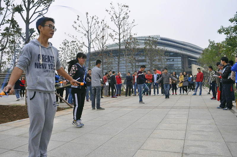 “宿舍吉尼斯”比赛共分为三项,分别为“一分钟跳绳”比赛、“最慢自行车”比赛和“四人五足”比赛。“一分钟跳绳”比赛和“最慢自行车”比赛由各宿舍选出一人参加,“四人五足”比赛要求宿舍所有成员参加,以三项比赛的总成绩决定宿舍的名次。在“一分钟跳绳”、“最慢自行车”比赛中有特长的宿舍成员代表宿舍参加比赛,在“四人五足”比赛中宿舍成员们体验着共同完成挑战项目的喜悦。整场比赛现场高潮迭起,精彩纷呈,参赛选手们热情踊跃地参加比赛,观众加油助威声、喝彩声一声高过一声,围观的观众也纷纷融入到这激烈比赛中,为获胜的队伍庆贺,充分展现了我校研究生团结协作的精神。