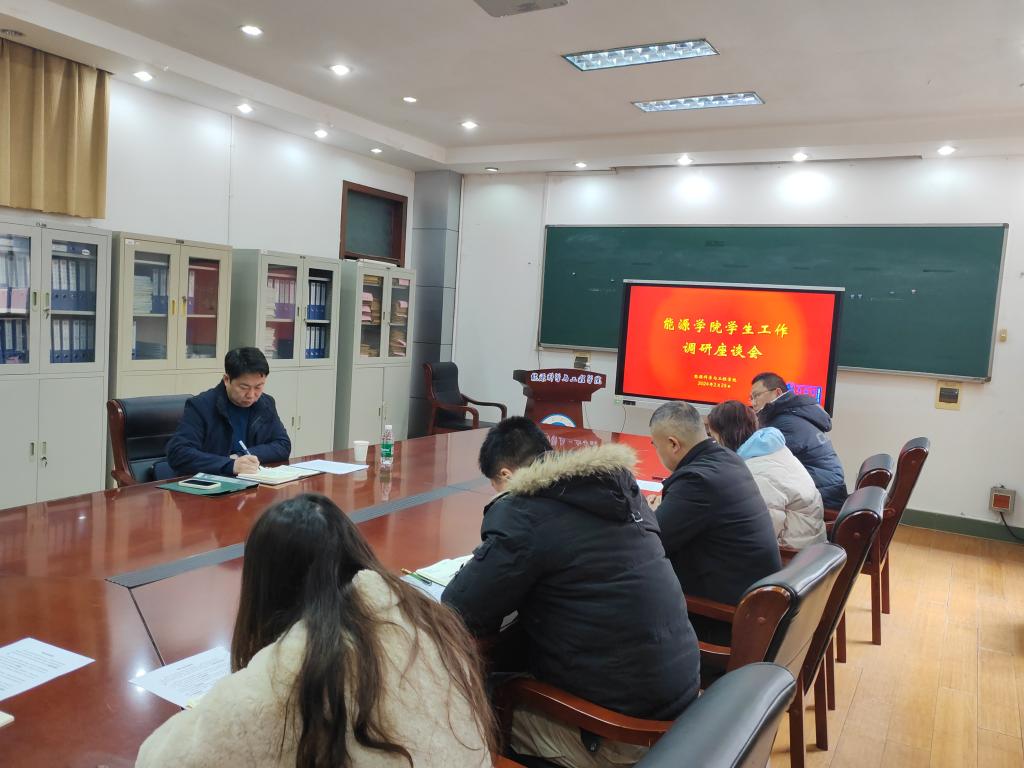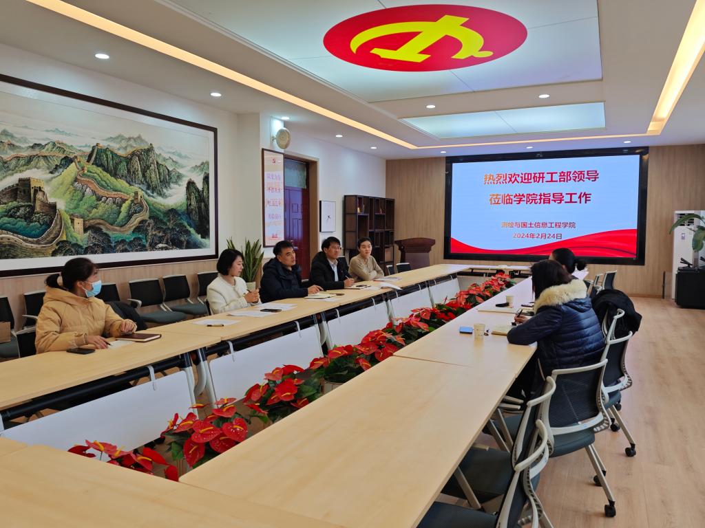 为加强学工队伍建设,进一步改进学生工作管理和服务水平,2月25日下午,研工部部长平瑞、思想教育课科长薛昊来我院进行学生工作专项调研,我院党委副书记郭学鹏及部分辅导员参加调研会议。